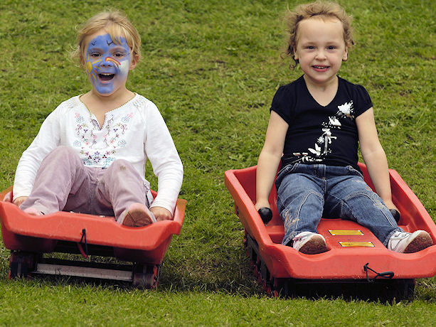 Our natural play area features giant grass-covered play tunnels, a mini zip wire (for children 8 stone and under), a slide, and grass sledges for extra fun.