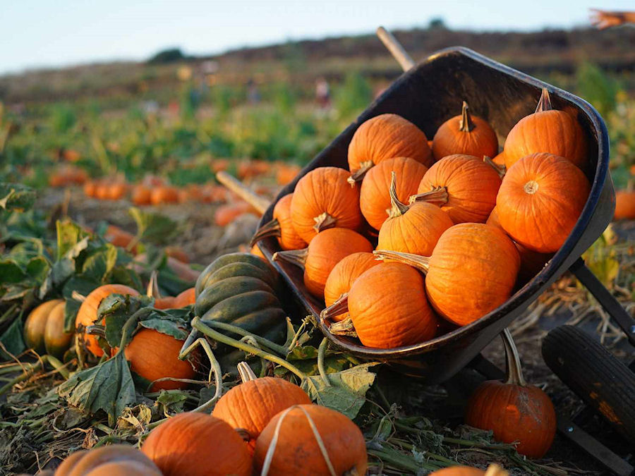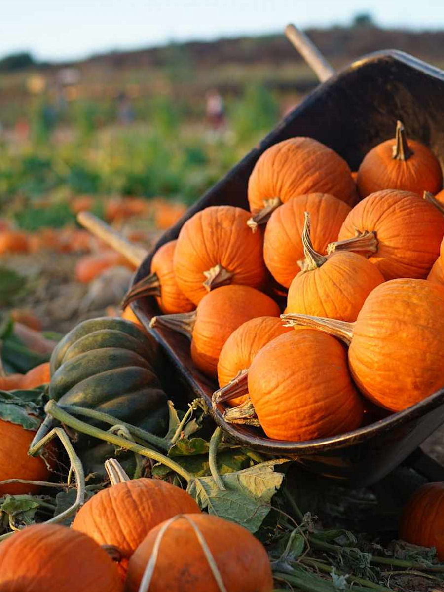 PYO pumpkins (ready in October) with carving barn and extra fun!