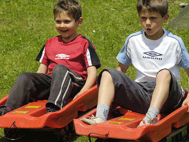 Our natural play area features giant grass-covered play tunnels, a mini zip wire (for children 8 stone and under), a slide, and grass sledges for extra fun.