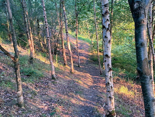 Set along a gentle incline at Porth Farm, Woodland Wander invites you to explore three acres of winding pathways beneath a canopy of oak, birch, rowan, holly, silver birch, and elm.